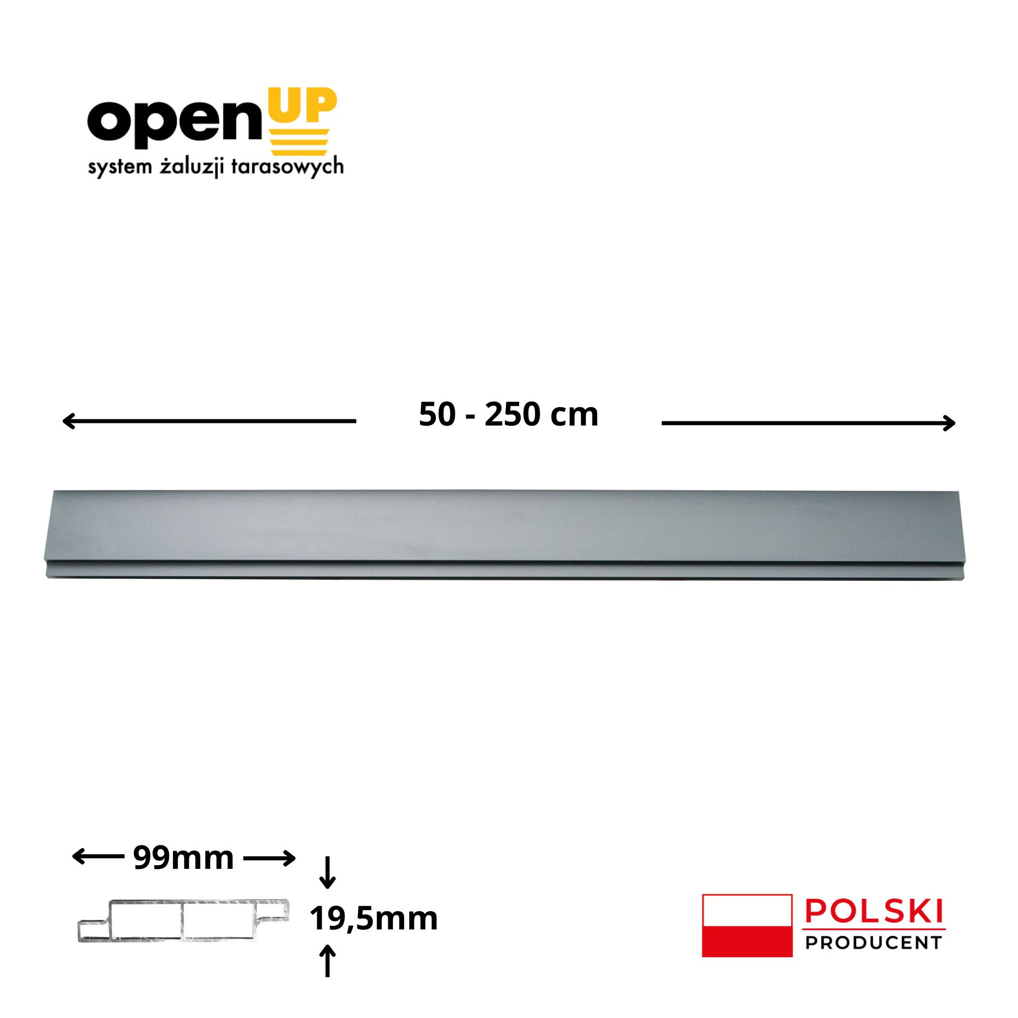 Otwrane.co.uk is not responsible for product defects caused by improper use of the products offered. You make horizontal installation of lamellas over 200 cm at your own risk. When installing aluminium blinds vertically, the maximum lamella length is 250 cm. Do not use lamellas with a cross section other than 9.9 cm x 1.95 cm.