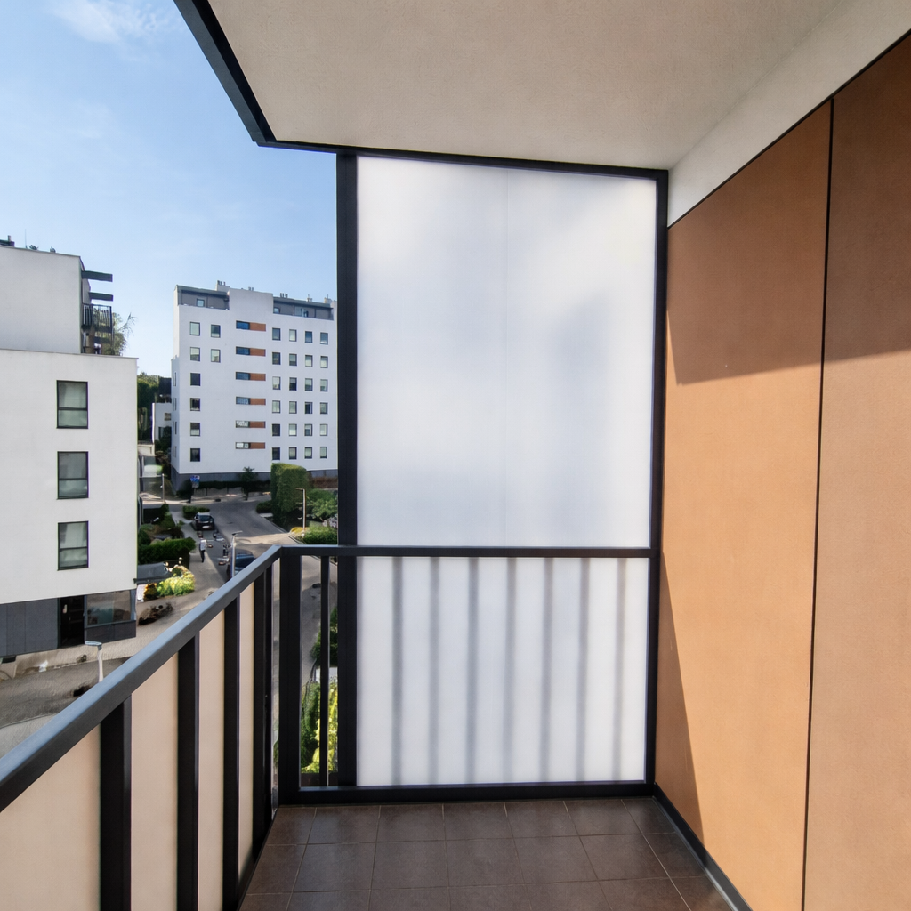 Panele boczne z poliwęglanu są dobrym wyborem, jeśli zależy Ci na ochronie przed wiatrem i deszczem, ale nie potrzebujesz możliwości otwierania ścian ani pełnej przejrzystości, jaką daje szkło. Poliwęglan przepuszcza światło, jednak – w przeciwieństwie do szkła – może częściowo ograniczać widoczność, co dla wielu użytkowników jest zaletą, szczególnie na balkonach i w gęstej zabudowie.