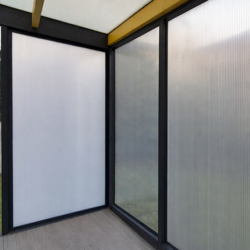 Poliwęglan sprawdza się nie tylko na zadaszeniach tarasów. Znajduje również zastosowanie jako ściany boczne w wielu typach przestrzeni: