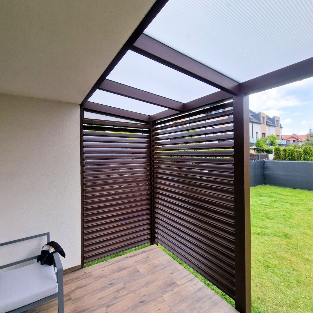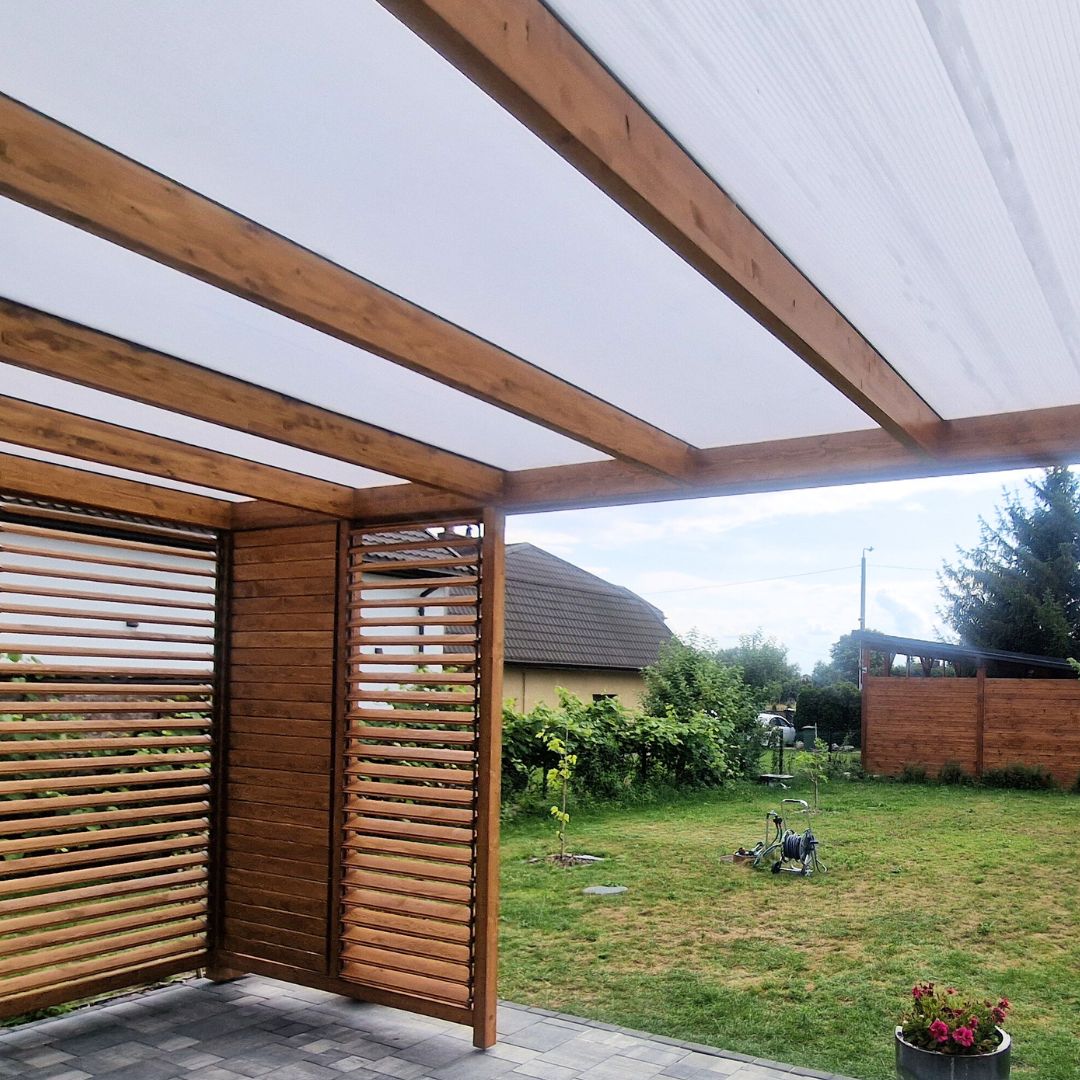 Yes, the following can be added to the structure sidewallse made of external blinds made of wood or aluminium. External blinds provide effective protection against wind and moisture and additionally shade the space under the canopy. You can freely adjust them by opening or closing the boards/lamellas.