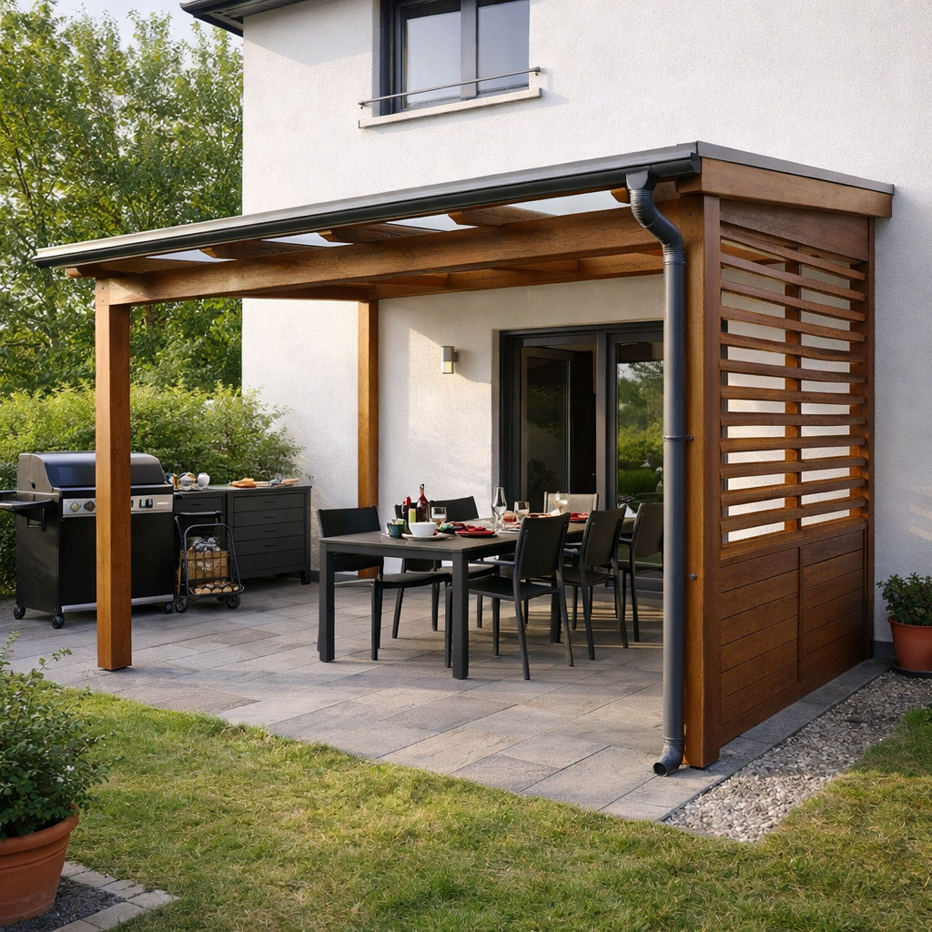 By opting for a made-to-measure wooden patio canopy, you get a structure that is perfectly tailored to your space and needs. Making a made-to-measure canopy allows you to make the most of the available area, regardless of its size or shape. This turns the terrace into a functional space where you can enjoy comfort whatever the weather. What's more, personalisation extends not only to the dimensions, but also to the choice of colours and style of finish, making the canopy blend in perfectly with the building facade and surroundings.