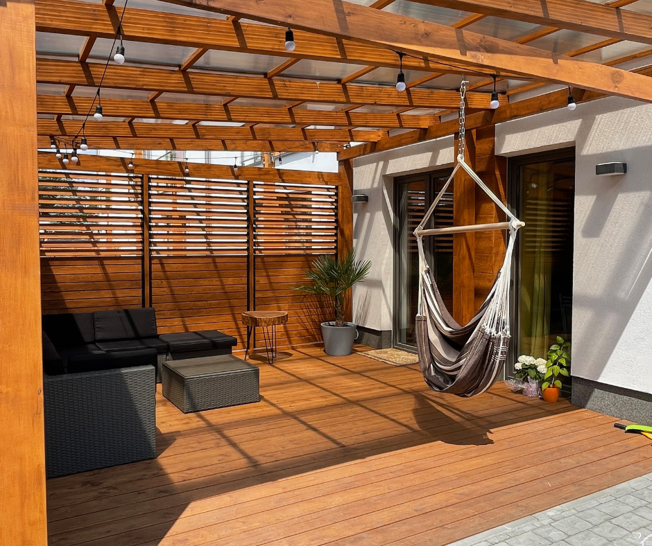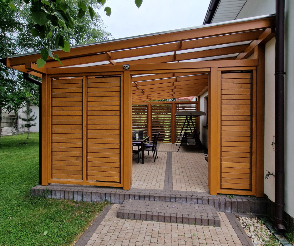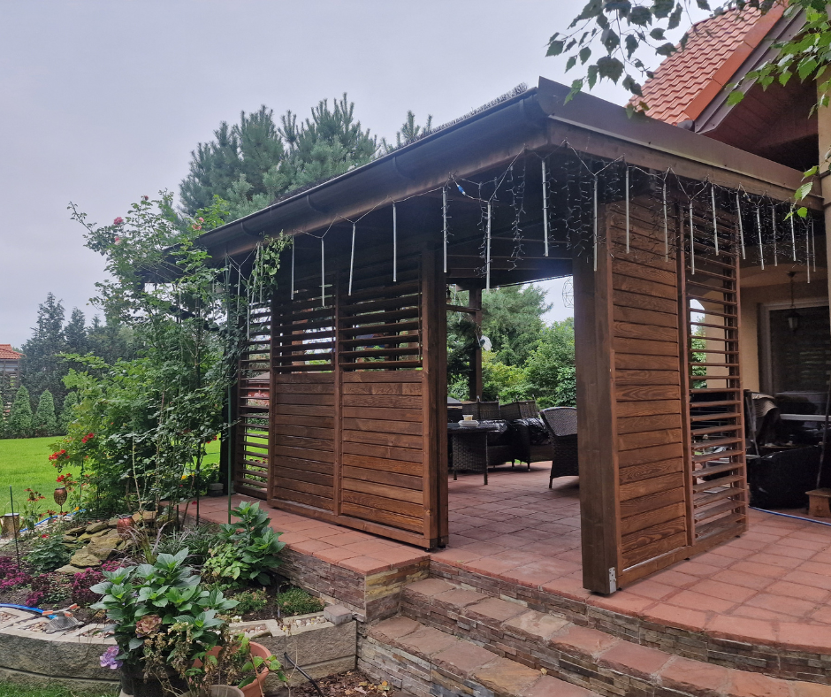 Zamów drewnianą zabudowę boczną tarasu, pergoli lub altany na ramie z drewna BSH plus deski malowane. Zabudowę projektujemy w sposób dopasowany do konkretnej przestrzeni – możesz wybrać zabudowę ruchomą, nieruchomą lub połączyć oba rozwiązania w jednej realizacji.